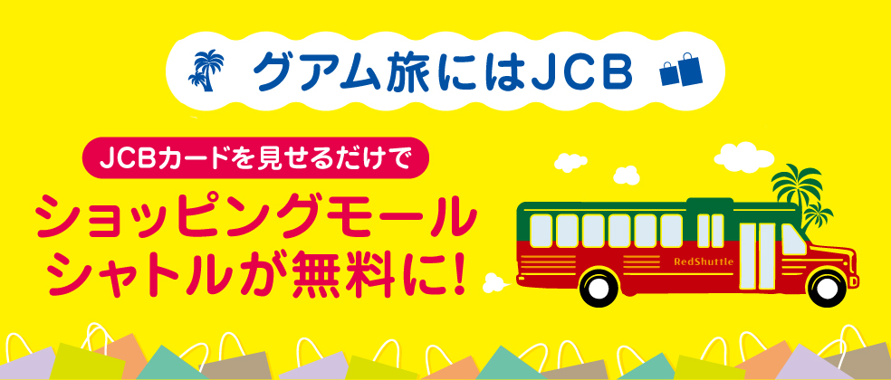 グアムの「ショッピングモールシャトル」乗車時、JCBカードを運転手に掲示すると、乗車賃が無料になります。(カード1枚提示につきカード会員ご本人様と同乗の子ども(6~11歳)2名まで無料。)