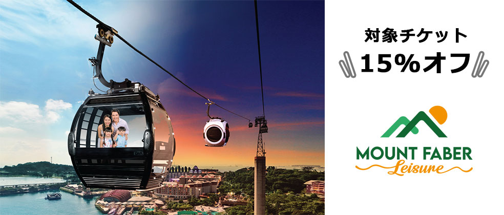 現地「シンガポール・ケーブルカー」のチケットカウンターで以下対象アトラクションのチケットを購入すると、通常料金から15%引きになります。