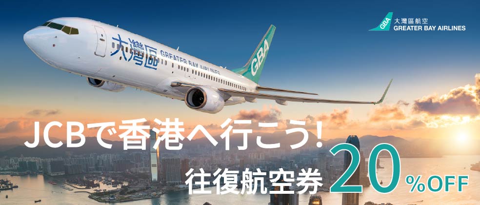 クーポンコードを使用して、JCBカードで日本発香港行き往復航空券を購入すると、20%OFFになります。