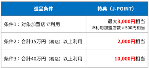 ※複数条件を達成された場合、合算したJ-POINTを付与します。