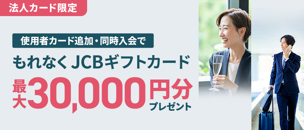 ※すでにカードをお持ちの方で期間中に代表者変更で新規入会された代表者カード、および期間中に使用者追加のうえ特典進呈までに代表者変更したカードも対象です。