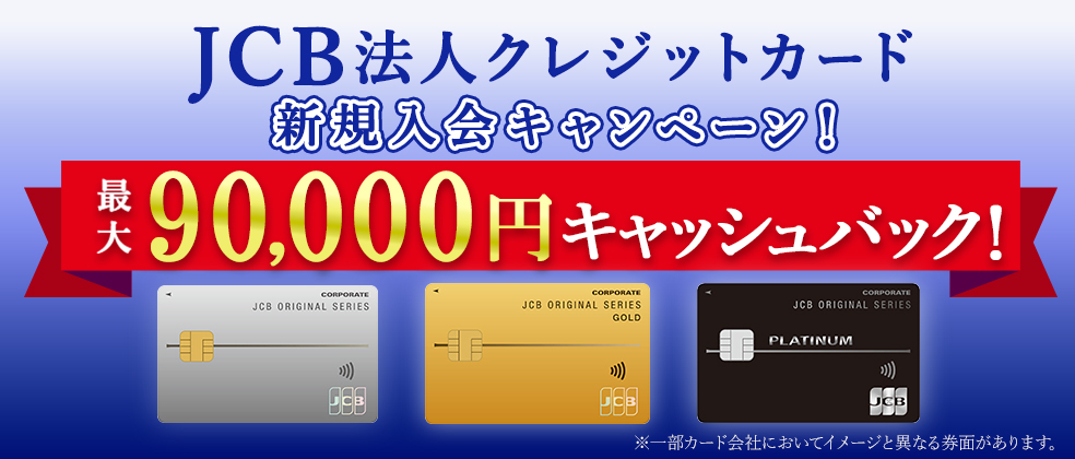JCB法人クレジットカードへ新規入会・発行完了&条件達成で、最大90,000円キャッシュバック!