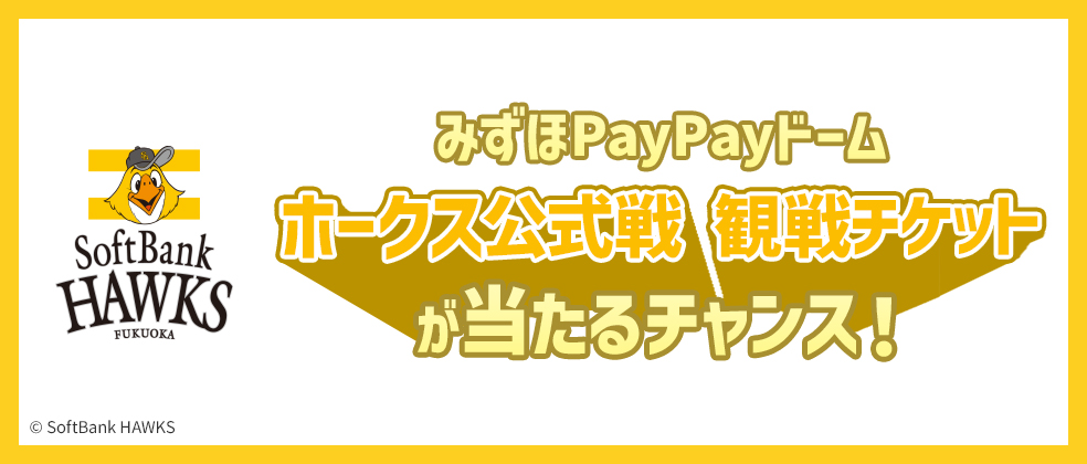 条件達成者から抽選で20組100名様にみずほPayPayドーム ホークス公式戦 観戦チケットをプレゼント!