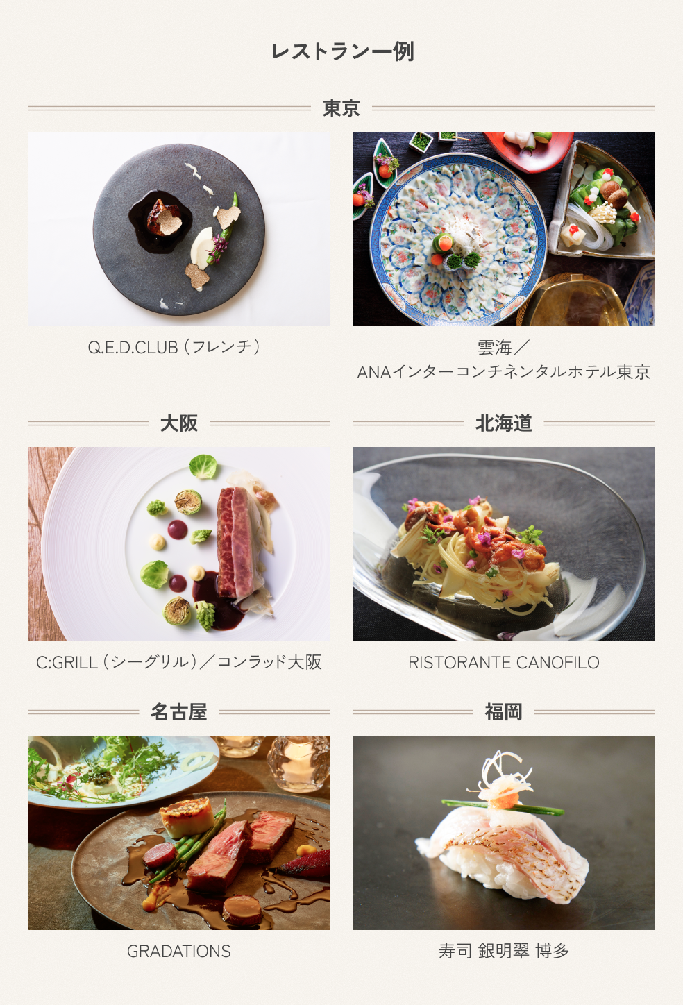 対象期間中にJCBゴールドまたはJCBプラチナに新規入会またはお切り替えのうえ、キャンペーン参加登録し、ご利用金額の条件を達成すると、もれなく「SOW EXPERIENCE」のレストランギフトをプレゼント!