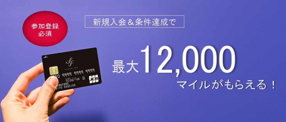 スターフライヤーJCBカードへの新規ご入会および各条件の達成に応じて、最大12,000マイルプレゼント!