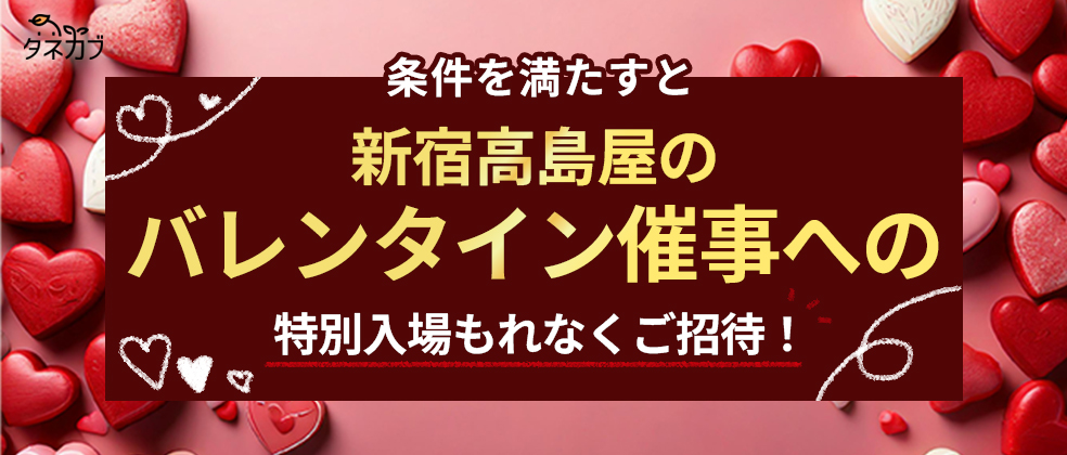 タネカブアプリをダウンロードして2025年12月31日(水)までに、参加方法に記載の条件をすべて満たすともれなく新宿高島屋のバレンタイン催事「アムール・デュ・ショコラ」へ特別ご招待!