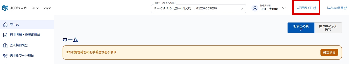 JCB法人カードステーションのご利用方法や各種機能の詳細は、ご利用ガイドにてご案内しています。