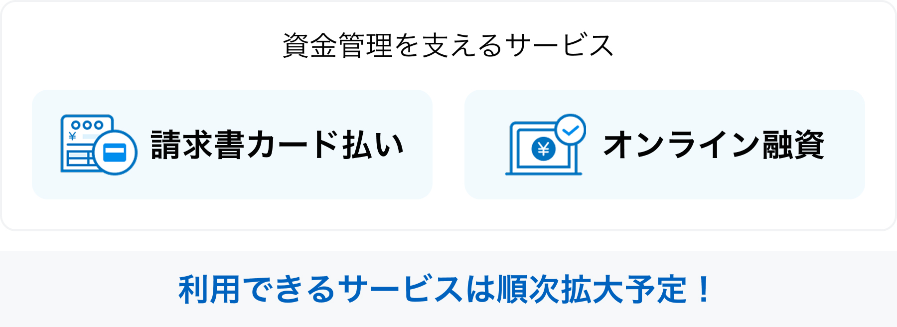 A.登録・利用ともに無料です。ご利用を開始するには、「JCB 法人カード」「JCB CARD Biz」「Biz ONE」のいずれかと対象カードのMyJCB IDが必要です。