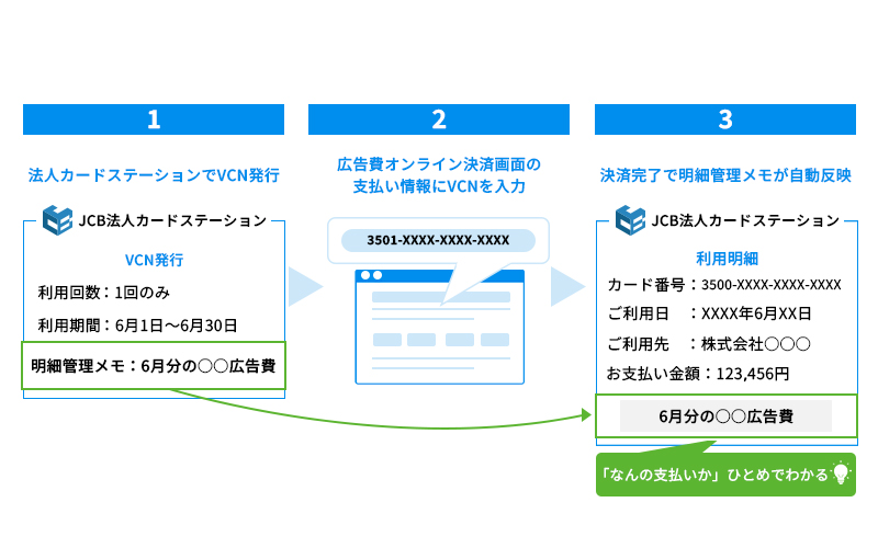 VCNは「JCB法人カードステーション」で発行・照会できます。