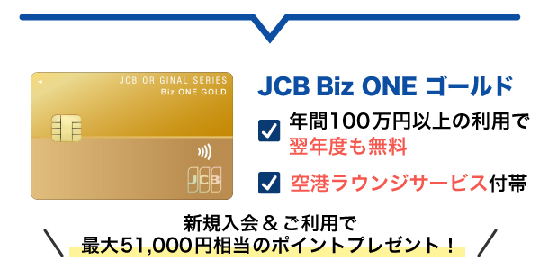 「JCB Biz ONEゴールド」は、法人代表者や個人事業主のための法人カードです。