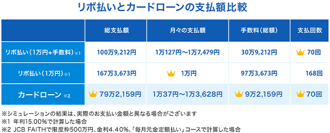 [リボ払いとカードローンの支払額比較]