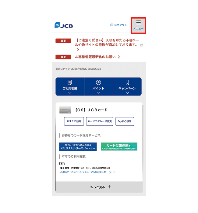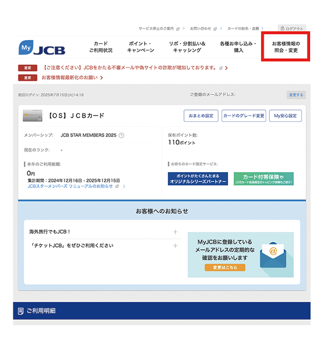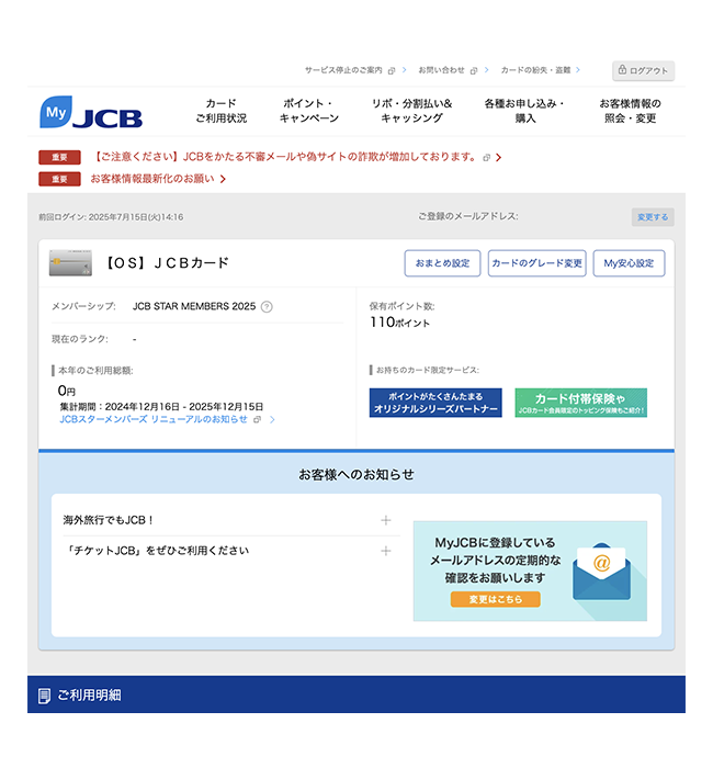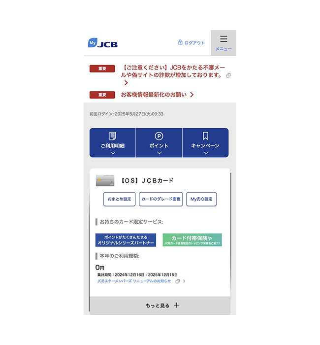 会員専用WEBサービス「MyJCB」