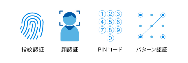 - あらかじめ、ご利用の端末で画面ロックの設定が必要です。画面ロックの設定方法はお使いの端末により異なるため、メーカーのサポートページなどで確認してください。