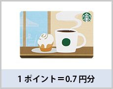 日本全国のスターバックス店舗(一部除く)にて使用できるスターバックス カードへ、J-POINTをチャージして利用できます。