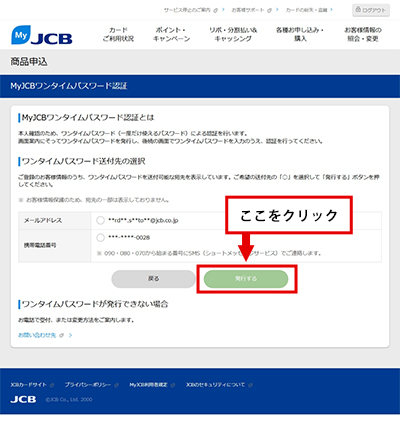 ワンタイムパスワードの送付先を選択し、「発行する」を押してください。