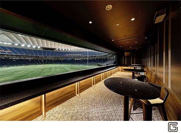 東京ドームのセンターバックスクリーンの裏側に位置するクラブラウンジ。JCB ザ・クラス会員の皆様に、上質な飲食と臨場感あふれる外野指定席での観戦を愉しむ特別席をご案内します。