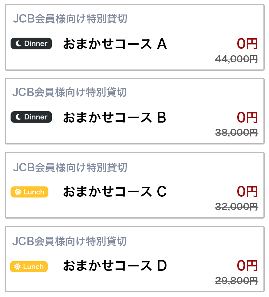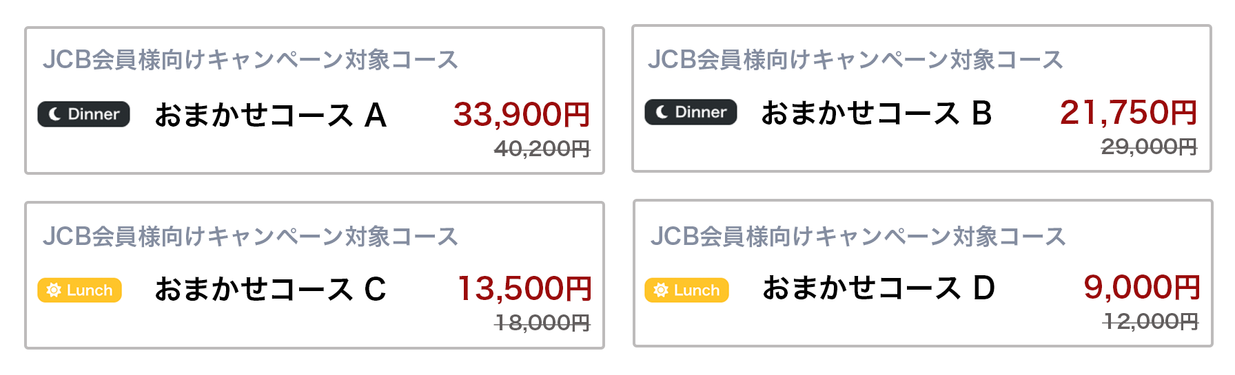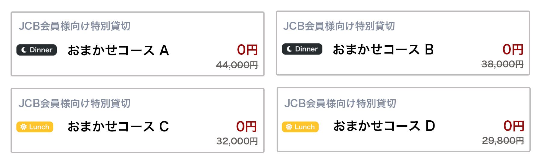 高級飲食店に縁遠さを感じるJCBプレミアム会員様の「こんな企画あったらいいな」にお答えする、多様な企画をご用意します。