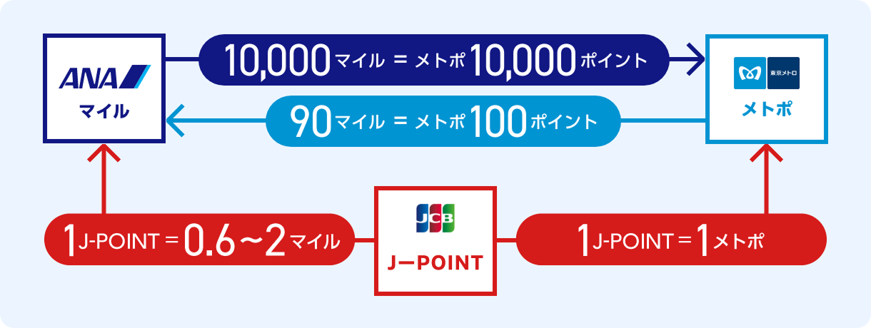 J-POINT、ANAマイル、メトポ |