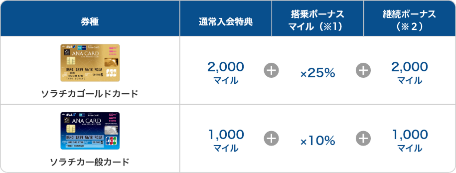 - 入会・継続ボーナス:1,000マイル