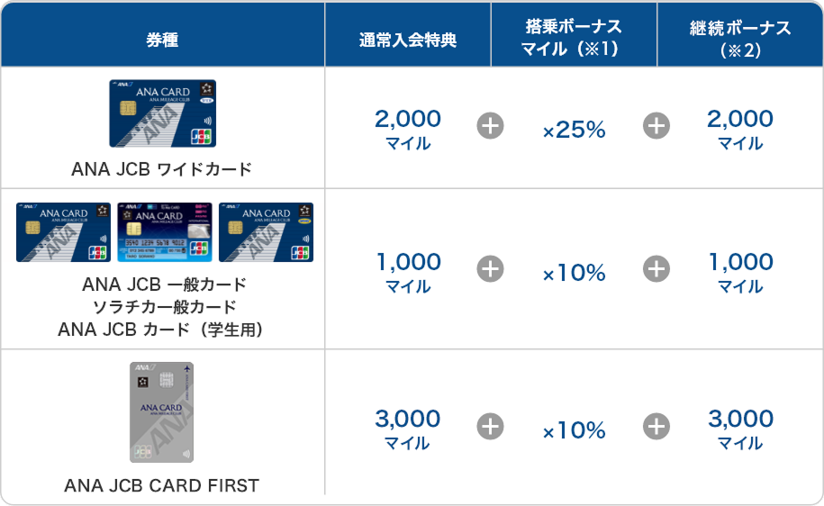 - 入会・継続ボーナス:1,000マイル