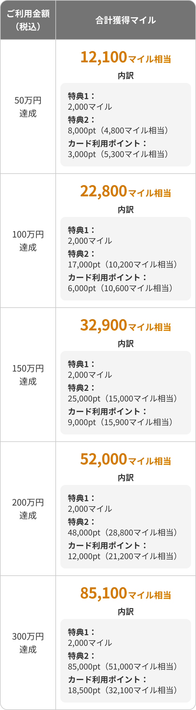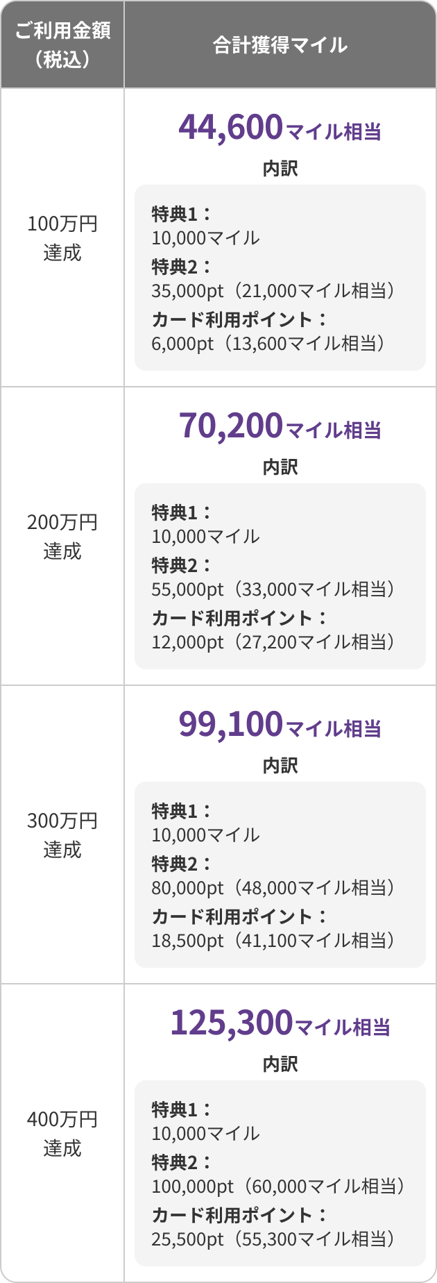 - 「2マイルコース」選択時は、マイル移行手数料年間5,500円(税込)をご請求します。