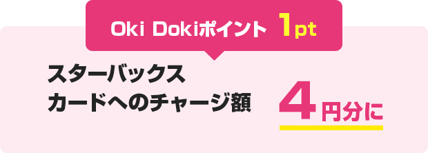 スターバックス カードへ、Oki Dokiポイント1ptを4円分として移行できます。