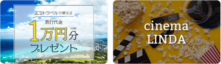 JCBトラベルで使える旅行代金(目録)やペア映画鑑賞券など、様々なプレゼント企画を毎月実施!