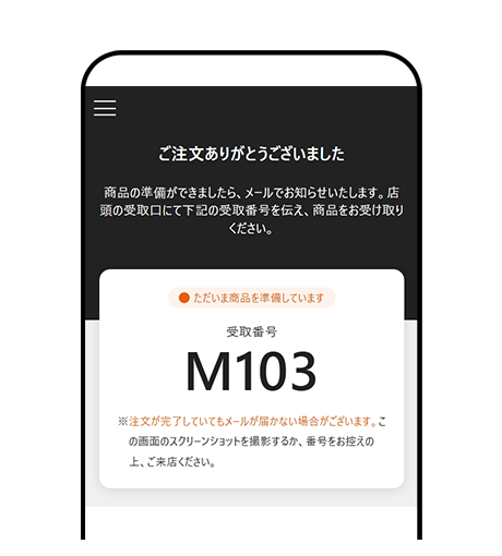 注文時に決済まで完了するため、店舗でスムーズに商品を受け取れます。