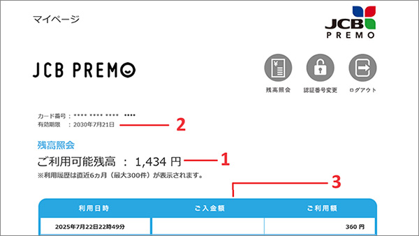 ご利用可能残高・有効期限・ご利用履歴の確認方法